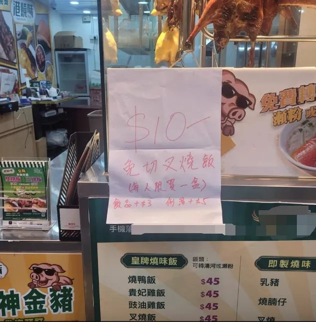 香港经济前景不明朗下,食肆纷纷出招自救!像近日观塘便有食肆重推沙士价10港币叉烧饭吸客,有网民看见大叹现时生意难做,呼吁大家要多支持!
