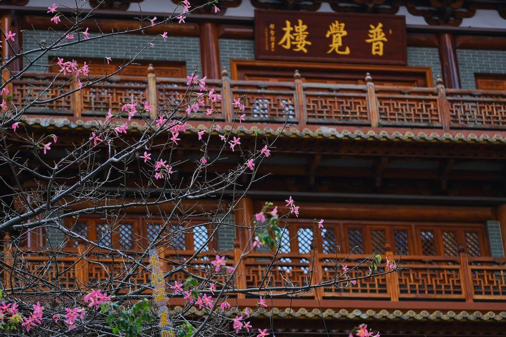 广州的异木棉开花时间通常集中在每年10月至12月之间,被誉为羊城的“秋日粉色浪漫”。到了次年春天,就是火红火红的英雄花——红棉花登场绽放。在北京路商业步行街西侧的大佛寺门口,盛放开花。微风吹拂下,异木棉花翩翩起舞,就像一个个婀娜多姿的粉色仙子,与古寺交相辉映,别有一番韵味。不少路过的市民游客纷纷驻足打卡拍摄。有街坊称:“美丽异木棉与红棉同期盛放,实属难得一见。”