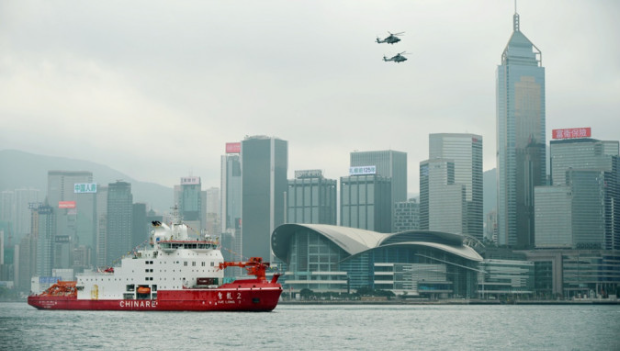 第一艘自主建造的极地科考破冰船“雪龙2号”周一(8日)起一连5日访港至本周五(12日),停泊于尖沙咀海运码头禁区。访港筹备委员会原定今晚(10日)上8时将有无人机表演,但到下午宣布取消。