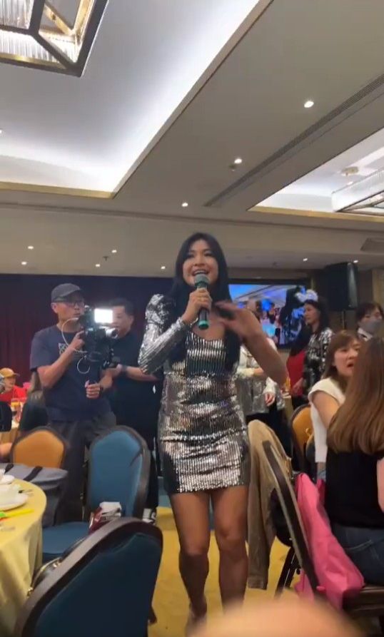 日前有网民分享一段影片,指当日为公司周年庆,邀得陈思圻任嘉宾献唱,影片中所见,一向身材出众的她穿上一条银色闪闪低胸超短裙,穿梭在各张桌子之间,并不停挥手搞气氛,陈思圻还唱陈百强的经典歌曲《深爱着你》。虽然歌声非常悦耳,而且陈思圻的打扮亦很吸睛,但身形丰腴的她未知是否近来疏于做运动,还是一身贴身战衣太难驾驭,其腰腹之间竟出现两截,骤眼看似乎有点赘肉,幸好无损观众的雅兴,纷纷向她投以注目礼。网民见到她的演出都留言表示支持:“港版陈妍希”、“啊啊啊细龙太好喜欢她啊啊啊啊”、“有她在的戏份真的很好看”、“她真的好可爱”。
