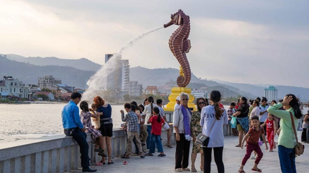 柬埔寨贡布省一座喷水海马雕像近日揭幕,成为打卡新景点。该雕像建在河边,有旅客认为景观似新加坡的鱼尾狮雕像,还有人将此景点称为“Singapot”,即“新加坡”(Singapore)和“贡布”(Kampot)的合成词。