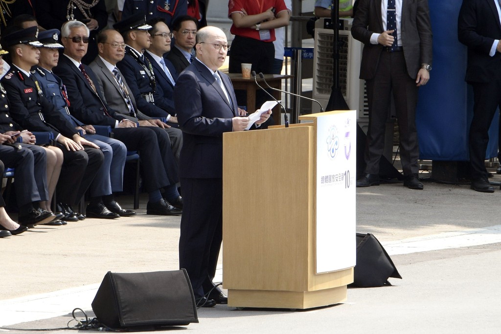 警务处长萧泽颐指出,1844年警队成立以来面对各种挑战,警员从不畏惧,维护法纪,日后将会继续肩负重任,并依据总体国家安全观,以宏观的视野严谨高效地执法,坚守维护国家安全的防线。