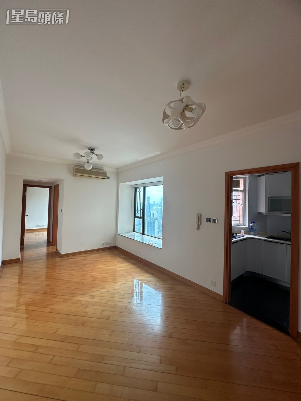 今次直击屋苑一个两房单位,位于2座高层B室,面积517方呎,叫价900万元,参考银行网上估价,单位估值约850万元,叫价较估价高约5.8%,单位以长形客饭厅设计,空间阔落,同时看到屋苑高楼底设计优势,即使安装两盏大型吊灯仍不感局促,非常具空间感。全屋似乎沿用交楼标准设计为主,木地板保养得宜,不过厨房及洗手间已稍见历史痕迹。两间房空间实用,其中主人房安装一个大顶大衣柜后,相信仍然有空间可三边落床。