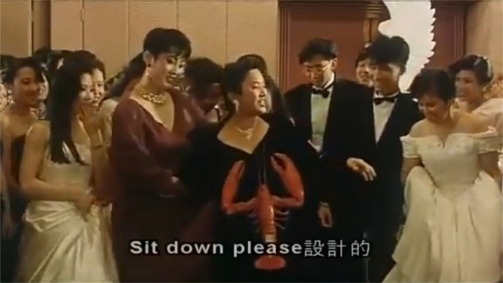 ▲刘嘉玲造型被指是向经典电影《与龙共舞》叶德娴的“龙虾装”致敬。