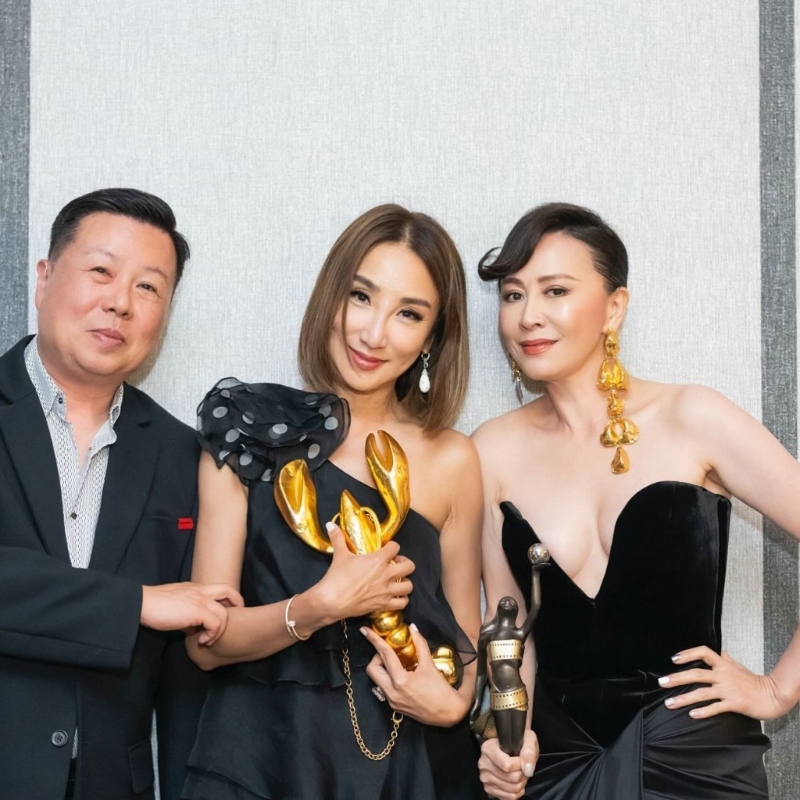 ▲刘嘉玲穿上黑色晚装衬“金龙虾”震撼全场。