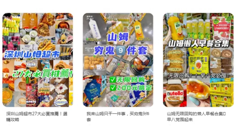 ▲网红化浪潮也是山姆俘获年轻人的原因,例如网上一些“去山姆装中产”的舆论,便引起不少消费的的窥探欲及猎奇心理,使其由鲜为人知的“中产自留地”变成年轻人心中的“网红乐园”。