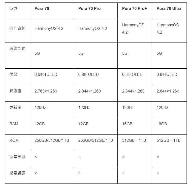 华为Pura 70系列开卖即被秒杀 4款型号规格大比拼