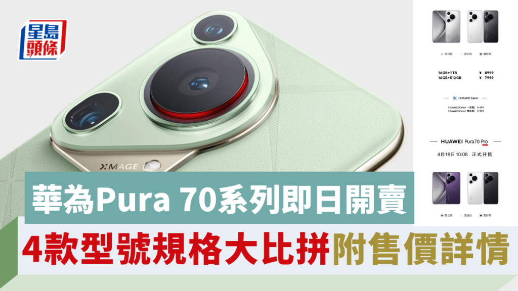 华为Pura 70|去年华为Mate60 Pro无预警开卖,大家都将华为与苹果iPhone15Pro大比併,成功掀起抢购潮,华为今日故技重施,无预告下在内地突袭推出新一代影拍旗舰手机Pura 70系列,包括Pura 70、Pura 70 Pro及Pura 70 Pro+及Pura 70 Ultra,当中Pura70 Pro及Pura Ultra率先上架,目前首批已被秒杀,各地专门店亦大排长龙,另外两款则要等到4月22日才正式开卖,究竟新作有甚么新功能及吸引卖点?有意入手应如何选择?立即睇4款型号规格比拼及价钱详情,看看哪款才适合你!