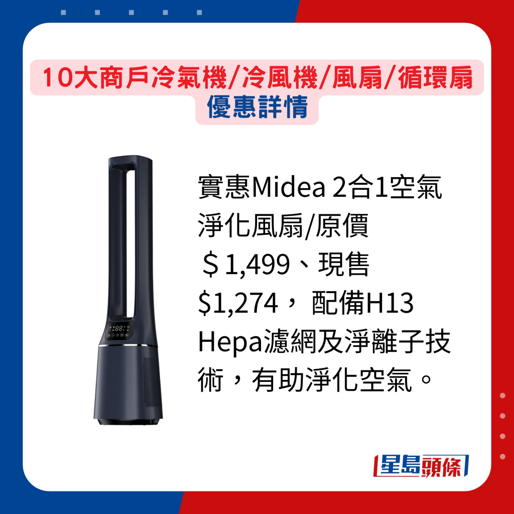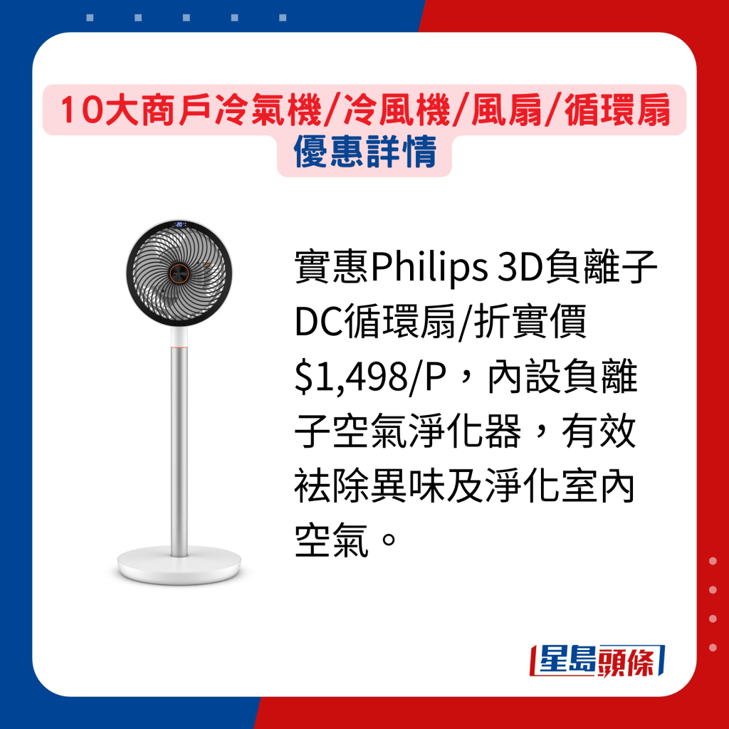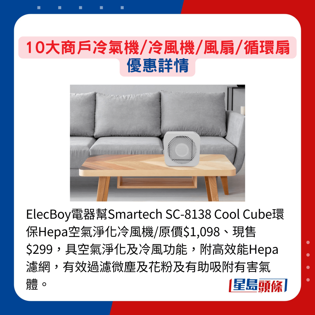 还未到5月,日间户外气温不时都超过30度,冷气机、冷风机、循环扇、风扇,以至便携式降温用品均已出动。 为迎接夏天,各大商户及人气品牌的网站及专店纷纷推出各式推广优惠,趁抵价再因应需要入货,无论身处室内或户外,都无惧炎热高温,时刻保持清爽凉快!