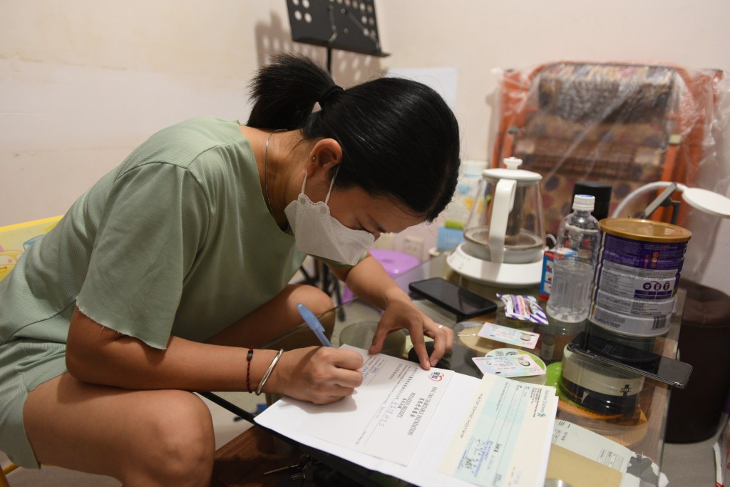 ▲《星岛慈善基金》捐出34000元给猝死男工人黄燕群的遗孀李女士。 尹敬堂摄