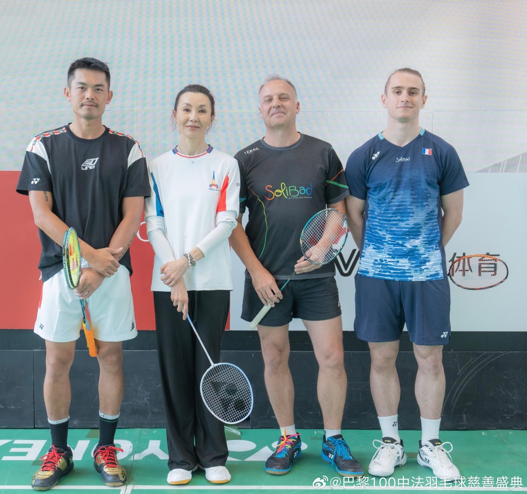 19日“巴黎100中法羽毛球慈善盛典”举行“中法明星表演赛”,由中国队对战法国队;由林丹与张曼玉,迎战法国羽毛球手Alex Lanier及Raphael Sachetat,曾演出《蓝白红三部曲之蓝》(Trois Couleurs : Bleu)、首位成为三大影展大满贯影后的法国女星Juliette Binoche亦有到场观赛,最终法国队以局数2:1险胜,最后一局更打到刁时。