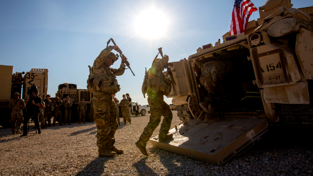 ▲一座美军驻叙利亚基地21日遭到来自伊拉克的5枚火箭弹锁定,传出酿成伤亡。图为驻叙利亚美军。美联社资料照