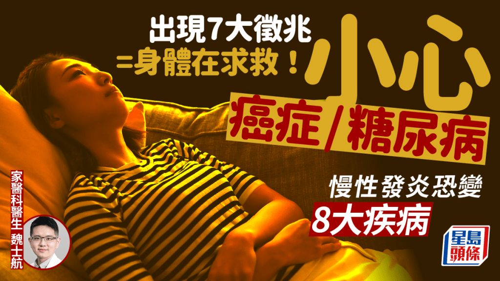 皮肤炎、肠胃炎等身体发炎时有发生,然而有些炎症没有明显不适,却埋下了糖尿病或癌症隐患。有医生提醒,身体出现慢性发炎可演变成8大类疾病,包括糖尿病及多种癌症。平日须注意7大征兆,切勿忽略健康警号。