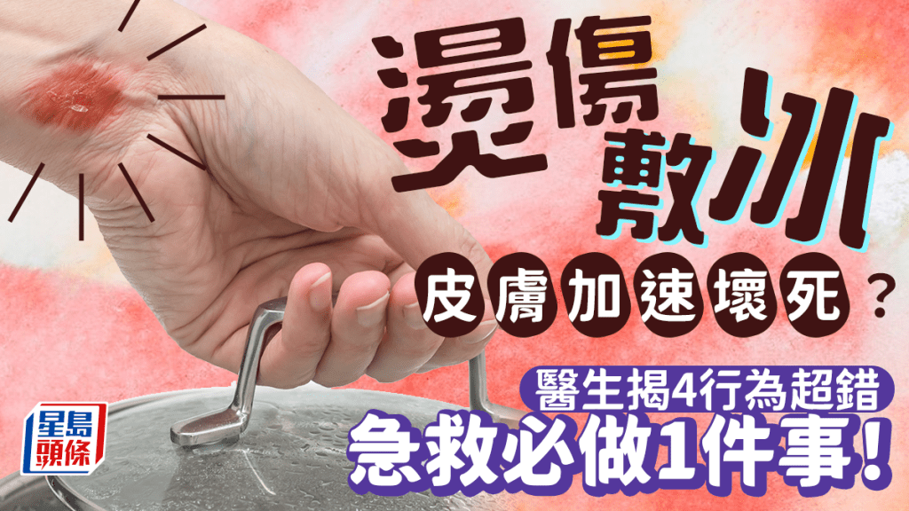 烫伤后不妥善处理伤口,可能会令伤势恶化,不少人或会立即冰敷伤口为伤口降温,但原来此举有机会令伤势恶化,让皮肤坏死。有皮肤科医生指,除了烫伤后立即冰敷,还有3个看似正确的烫伤急救行为,其实会令伤势恶化。她建议当不幸烫伤时,患者必须优先做1个步骤作急救处理才正确。