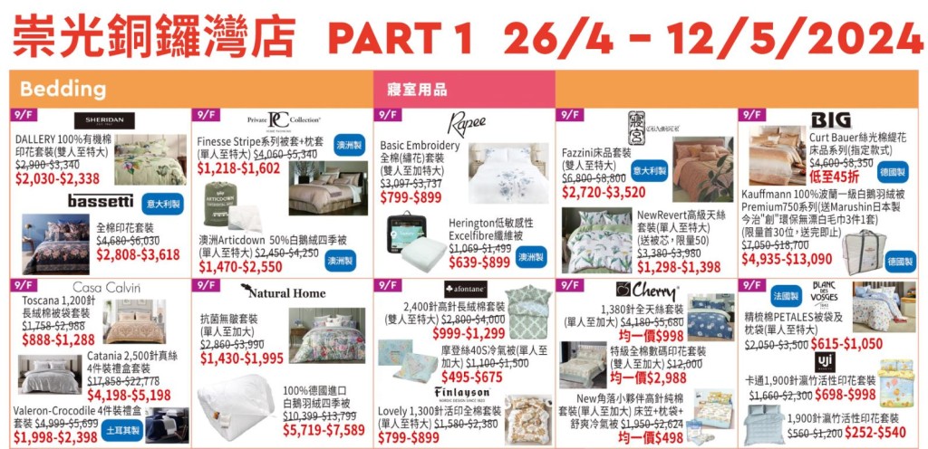 ▲SOGO感谢祭 26/4 - 12/5寝具优惠