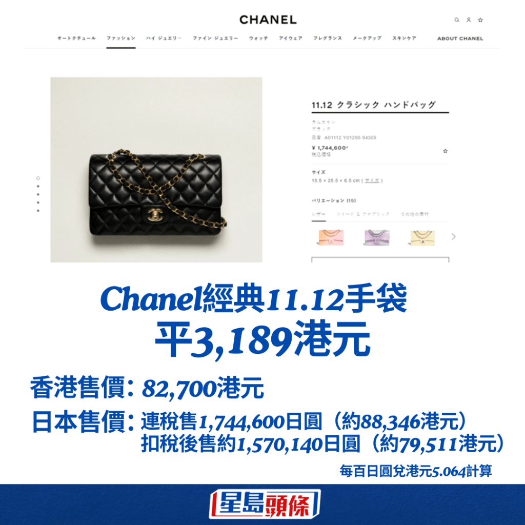 她举例指,LV CarryAll PM侧背包在日本官网售价为379,500日元(约17,767港元),中国官网售价则为20,600元。另外,一条MIKIMOTO项链在日本售价约7,500元,较内地便宜3,000元。