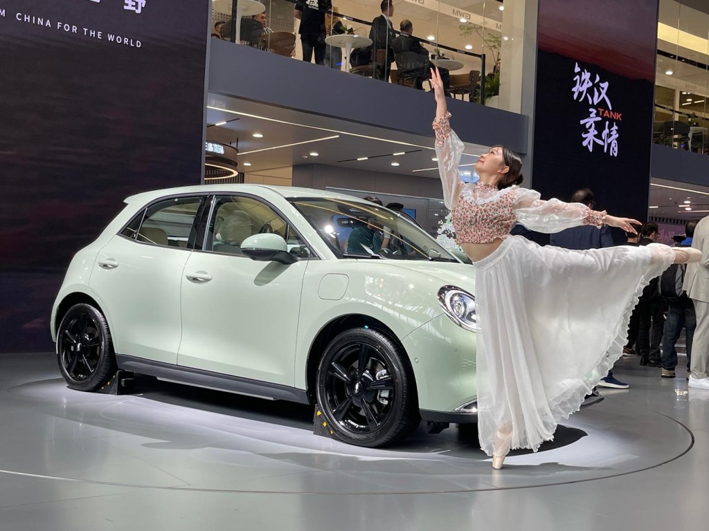 ▲长城汽车集团展示旗下欧拉(ORA)Funky Cat电动车。