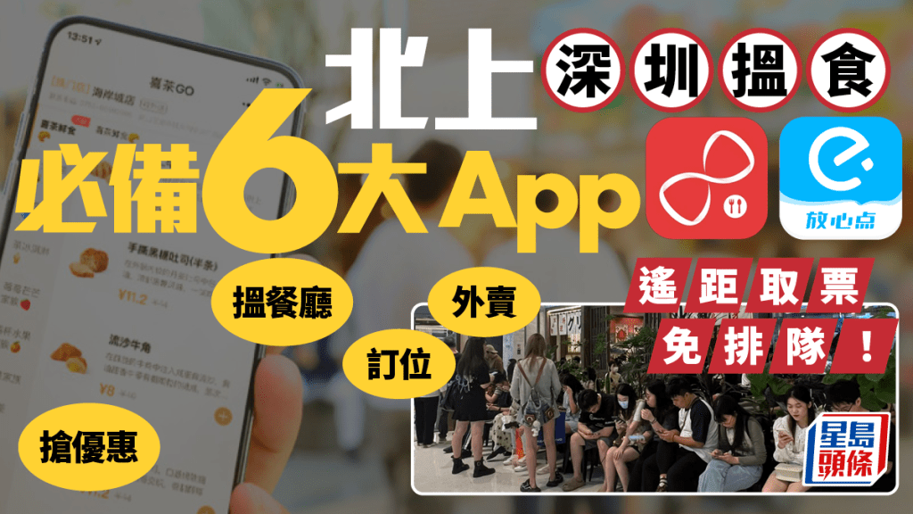 港人北上内地消费已成潮流,无论是周末或是长假期等都密密涌上深圳觅食兼扫货,人流几乎逼爆各大商场!若想到人气网红餐厅吃个饭,或只是买杯手摇饮品,难免要花点耐性排队等位及轮候。这次精选了6个北上深圳觅食必备App,可用作遥距取票、搜寻餐厅、订位、买外卖及抢优惠等,免却亲身去拿票排队之苦,让计划去深圳旅游的吃货们更方便!即看6大必备深圳觅食App。