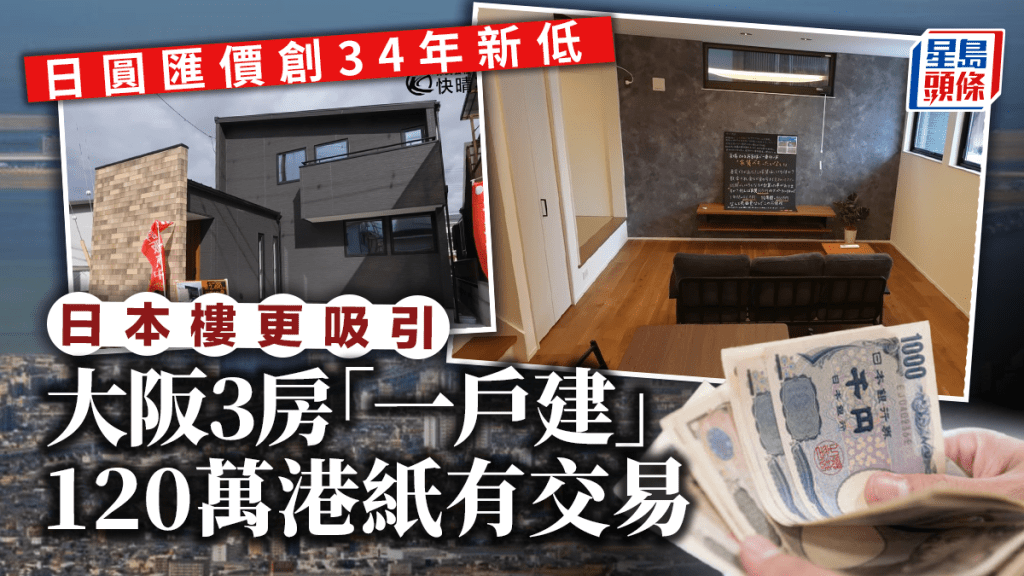 日元持续疫弱跌,昨日汇率进一步下试,每百日元兑港元见4.92。 日本不但成为港人外游不二之选,在日元贬值下,日本楼变相折上折,对投资者来说相当吸引。 若有120多万港元预算,在香港或许只能买一个车位,但在日本的大坂已经可以买到一间空间十足、俗称“一户建”的独立屋。