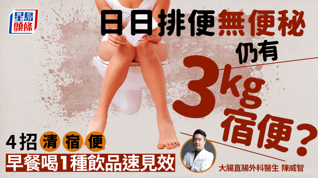 没有便秘问题,就没有宿便?有医生指出,即使身体健康、每日定时排便,也会有宿便问题,甚至可重达3公斤!他教4招清空宿便,例如早餐喝1种饮品有助排出宿便。