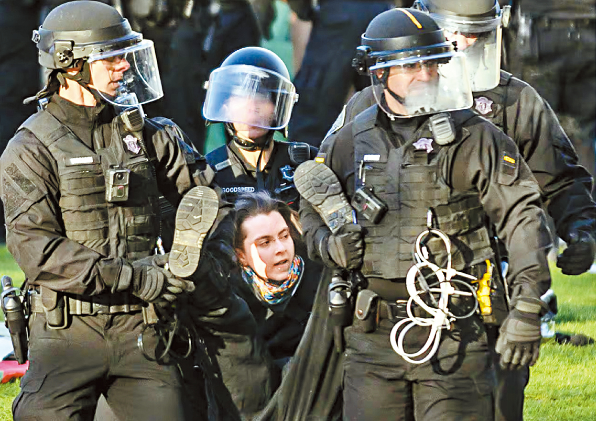 警方日前对波士顿大学校园进行第二次大规模扫荡,周六早些时候,警方清理东北大学的一个亲巴勒斯坦营地,拘留约100人。《波士顿环球报》对此作报道。