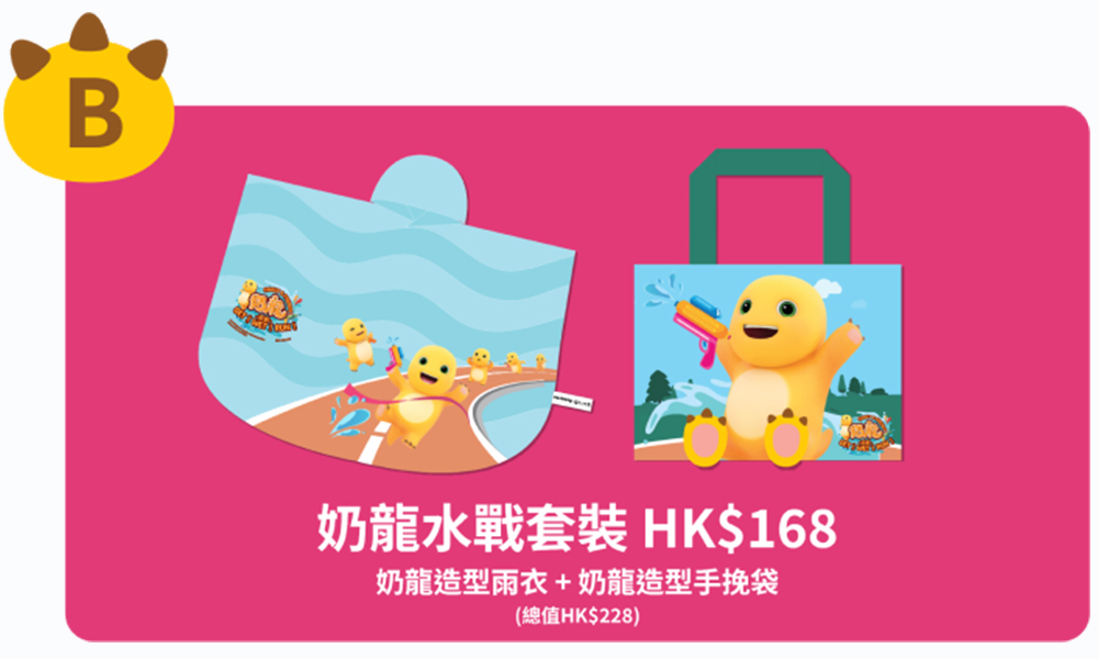 除了奶龙路跑活动,场地亦设有多个打卡拍照热点,亦有不同的市集摊位,完成赛事后可继续尽情玩,投入萌爆奶龙世界。 另外,除了基本的跑手运动装备外,跑手亦以优惠价额外加购四款活动限定套装,包括有奶龙随身套装、奶龙水战套装、奶龙沙滩套装及奶龙消暑湿水套装。
