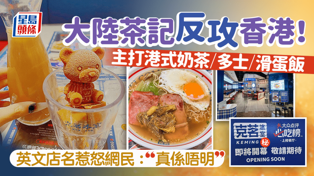 近年不少内地餐饮攻港,如木屋烧烤、蜜雪冰城、太二酸菜鱼等等,最近人气港式茶记“克茗冰室”亦宣布“反攻港”来港开分店,克茗冰室的设计以香港地铁为主题,推出肠粉、西多士、滑蛋饭等港式食品,就连香港土生土长的韩国男团GOT7成员王嘉尔都有帮衬过!最近有网民于网上群组分享,发现克茗冰室首间香港分店选址热门游客区尖沙咀,惟网民发现餐厅名英文串法甚有喜感,引起热议。