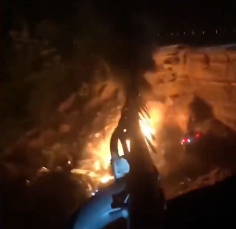 ▲塌陷路段有汽车跌落大坑起火,冒出火光及浓烟。