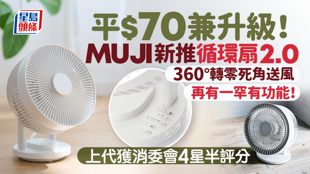 循环扇近年大受欢迎,愈来愈多家庭都会买定一部“看门口”,如果摆放位置得宜的话,随时可为家中节省不少冷气费。消委会早前测试过12款循环扇,当中包括无印良品的循环扇,总评分高达4.5星,整体安全程度亦达5分,而售价仅$590。 不少网民认为这把循环扇够耐用,安静之余风速又不错,更封为去MUJI必买的神级好物,CP值极高。