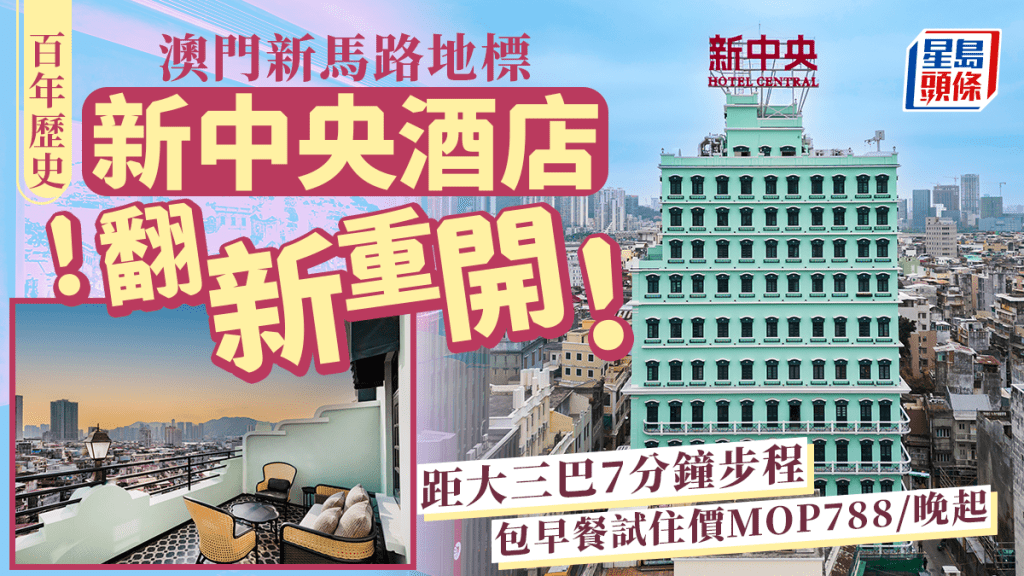 澳门几乎每年都会有新酒店登场,但最近开幕的新中央酒店,对于经常“过大海”的朋友来说相信并不陌生,算得上是澳门新马路的地标之余,亦可算是当地人的集体回忆,皆因这间酒店早在1928年已屹立在新马路中心,更被评定为文物建筑群。 酒店于2016年被私人发展商收购并进行活化重建,历时8年,最近终于重新开业。 新张期间,酒店更推出试住价优惠,只需澳门币$788起即可入住更包双人早餐,酒店距离大三巴、议事亭前地等景点亦非常近,够方便。