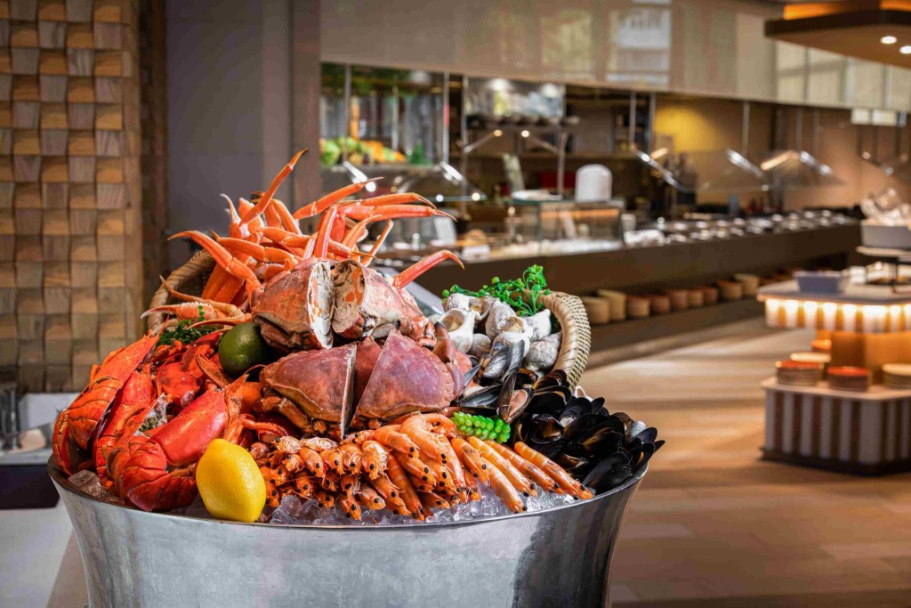 香港康德思酒店The Place味游“鲜”境自助晚餐供丰富冰冻海鲜及海鲜热盘,除了肥美的龙虾钳、蓝青口、翡翠螺及熟虾外,更有时令新西兰或美国生蚝、原只开边龙虾及面包蟹,大大满足一众海鲜迷。 晚市大受好评的蒸气海鲜区则继续供应鲜味无穷的鲍鱼、海虾及扇贝,还有其他海鲜菜式,如避风塘炒大虾、明太子焗扇贝和酥炸生蚝,加上精选杂锦刺身、寿司、卷物、冷面及精致日式前菜,以及即切的烤美国牛肋骨、厚煎鹅肝等,绝对大满足。 而甜品则有法式伯爵茶杏仁黄金砖、焙茶焦糖炖蛋、北海道蜜瓜啫喱、港式鸡蛋仔,以及8款口味的MÖVENPICK®雪糕。 而5月11及12日母亲节自助晚餐更限定推出花之恋、鹅肝慕丝酥皮盒配无花果酱、日本刺身带子。