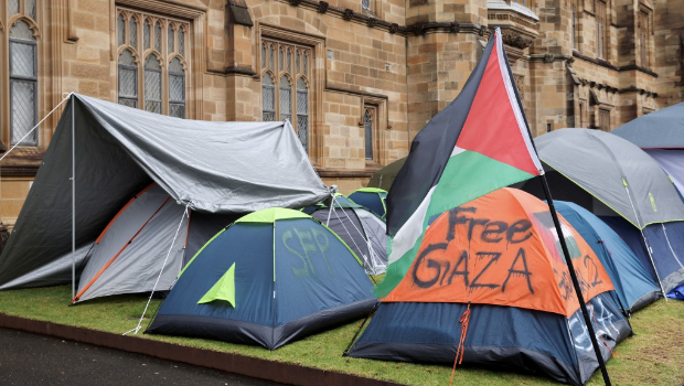 支持停火的示威群众迄今已在雪梨大学前的绿色草坪上扎营10天,约有50个帐篷、至少100个示威者在那里过夜。他们要求校方与以色列相关机构切断关系,并拒绝来自军火企业的资助。