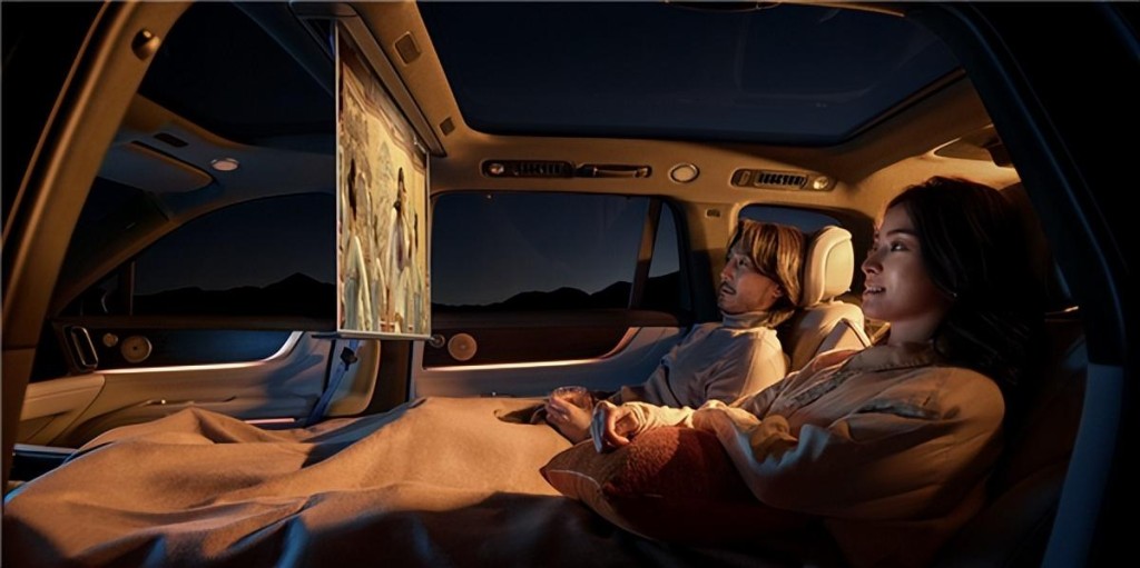 ▲问界M9内有电动升降的32时雷射投影幕,可把车厢秒变流动影院。