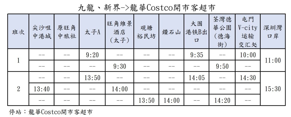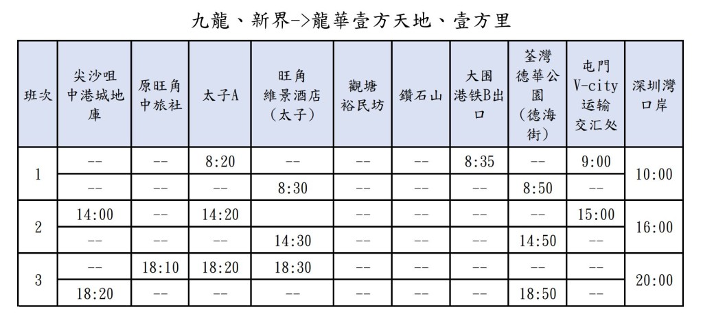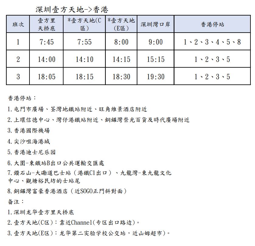 中旅巴士深圳购物线票适用于往/返香港、九龙、新界至深圳前海壹方城购物中心、龙华Costco或龙华壹方天地(山姆超市)。 每日由早上8am至晚上9时提供多班车次。 票种为单程票,每张原价港币$80,可于去程或回程使用,无方向限制。 由即日起至 5月21日,于7-Eleven购买成人单程车票即可享半价$40 优惠。 如节日期间使用车票,中旅巴士或会于乘客上车时收取车票差额。