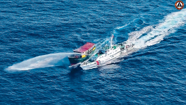 南海争议|菲律宾补给船再闯仁爱礁被中方水炮驱赶,海警局:玩火者必自取其辱