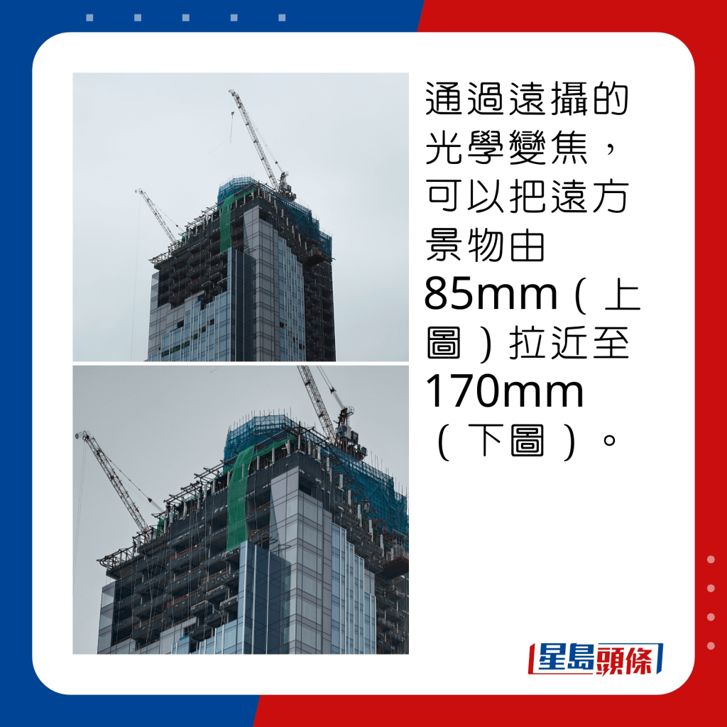 ▲通过远摄光学变焦,可以把远方景物由85mm(上图)拉近至170mm(下图)。