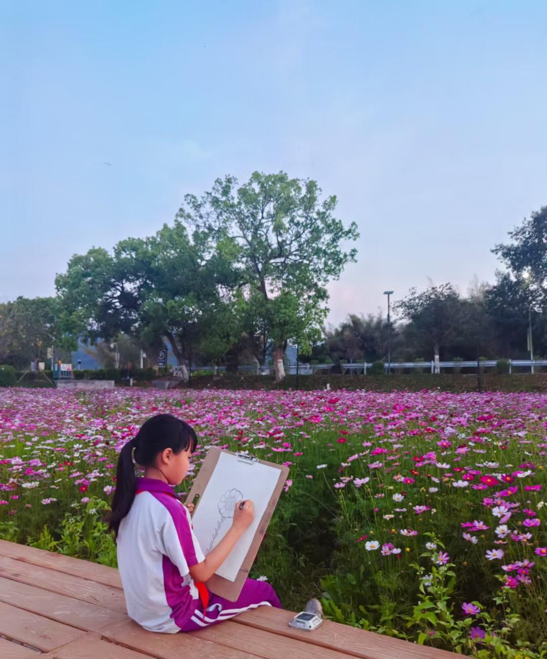 Lingnan: Beauty Beyond Borders | Beitang Village in Xihe Town, Meizhou, on the banks of the Zhangxi River, has a history of more than 800 years since it was founded at the end of the Song Dynasty and the beginning of the Yuan Dynasty. After a few rains in May, the #bamboo forest along the Zhangxi River becomes more and more verdant. The seedlings in the paddy fields, the wild #flowers on the hillside, the periwinkle houses beside the village road, and the villagers taking a walk... They all form a beautiful #countryside scene, which just happened to be depicted on the boards by the painters who came to sketch to record this wonderful moment. #SplendidLingnan
