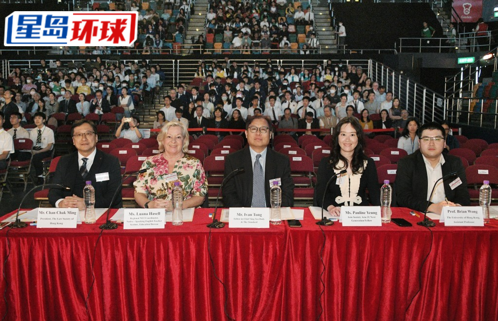 ▲香港立法会议员江玉欢律师担任星岛第三十九届全港校际辩论比赛总决赛(中文组)评讲嘉宾。
