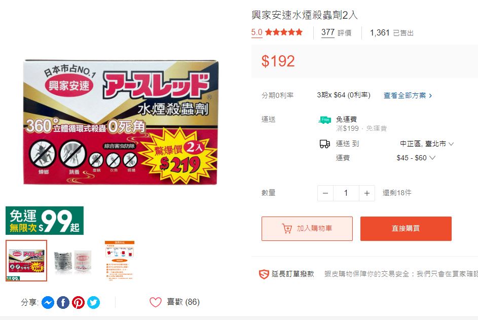 ▲在台湾的网购平台搜寻“水烟杀虫剂”可找到不同品牌的出品。