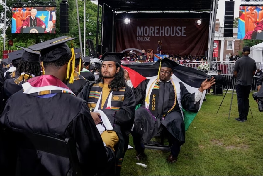 莫尔豪斯学院许多学生曾为加沙战争而提出取消拜登演说的要求,不过昨天典礼的进行未遭打断。