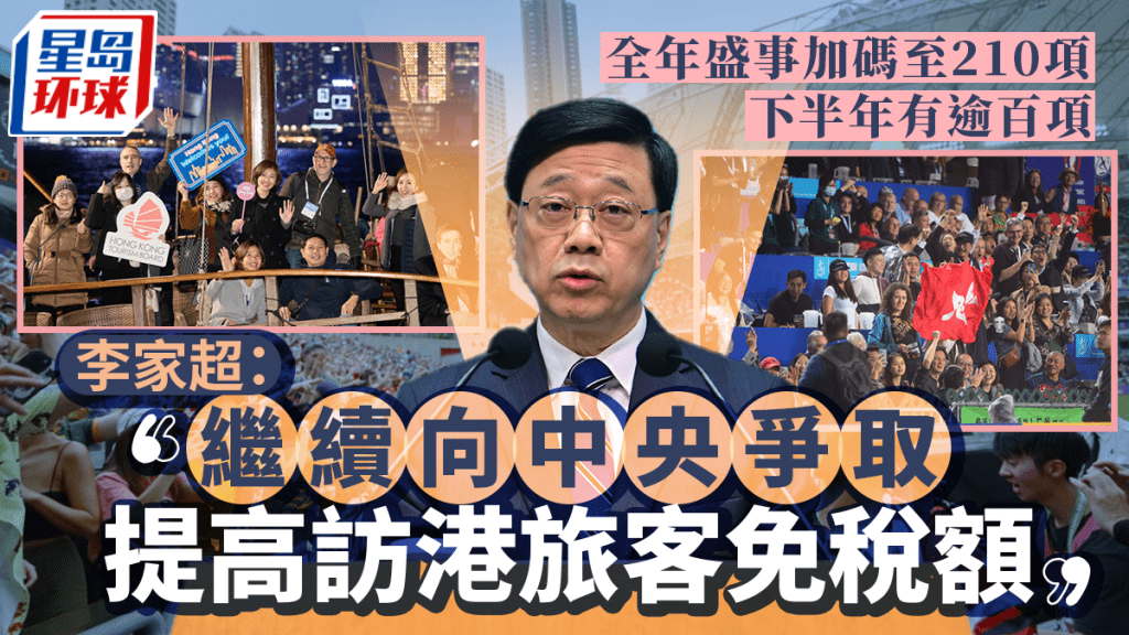 【09:49】李家超指,今年初曾说全年有150项盛事,他宣布会加码六十多项,总共超过210项盛事,增幅超过四成,可吸引约170万人参与。下半年有100项盛事,包括演艺博览、时装设计周等。