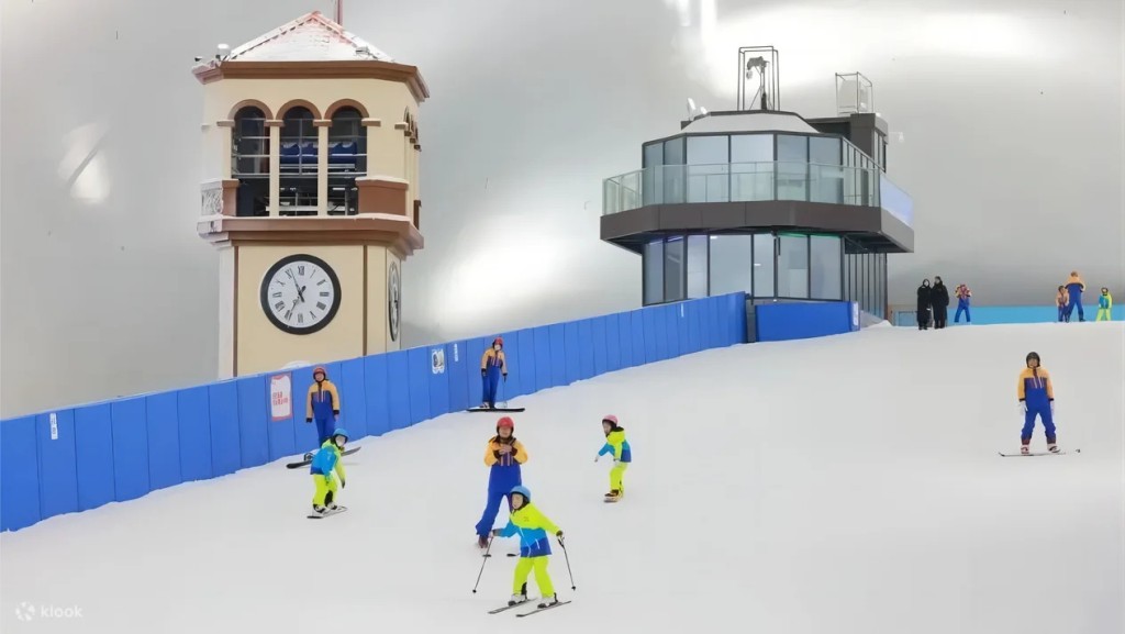 有妈妈指小朋友最爱玩胎滑道,坐在轮胎上滑下来超刺激,小朋友连玩多次,就连大朋友也觉好玩! 另外,必玩的包括有无动力摩托车、旋转滑梯、坐式雪板、儿童雪地车待,亦记住要北极幻影打卡,如真实般的极光,能拍出美美打卡照。 另提提各位爸妈,需自备防水保暖手套、袜子、口罩等,免孩子着凉,那就玩得更安心。 同场亦设有滑雪区,可进行滑雪教学和练习。 滑雪区雪道分初、中级雪道,适合初学者试玩。 而雪道雪质虽为人工造雪,但能制出适合滑雪的粉雪。