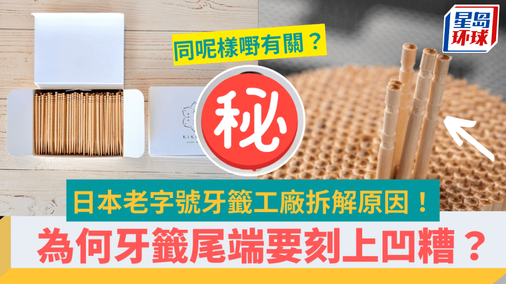 平时吃完饭用牙签,有没有留意部分牙签尾部会刻上一些“凹位”,而日本一间老字号牙签工场最近宣布,未来出产的牙签末端不会再刻有凹糟,引来网民热烈讨论。 究竟牙墙上的凹糟有什么作用? 牙签工厂又为何放弃这个工序?