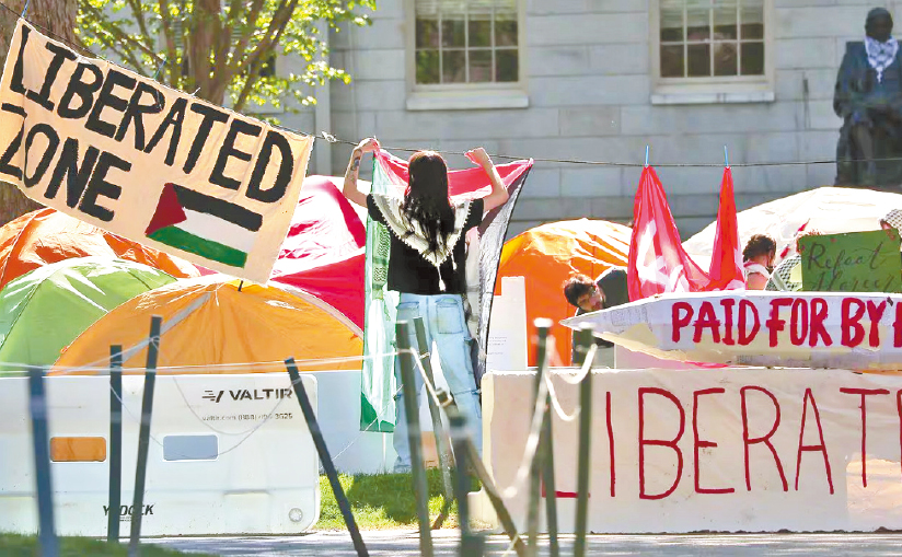 ▲哈佛校园内亲巴勒斯坦学生的营地(摄于5月7日,营地被拆除前)。LANE TURNER/GLOBE STAFF