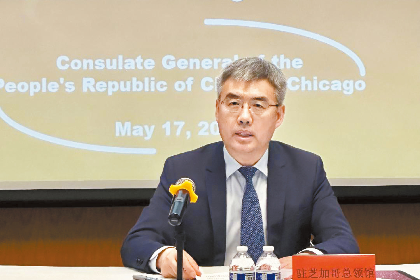 ▲中国驻芝加哥总领馆赵建总领事,17日在领馆召开记者会,详谈中美关係与台湾等问题。 梁敏育摄
