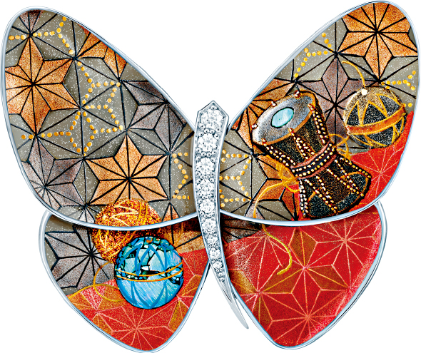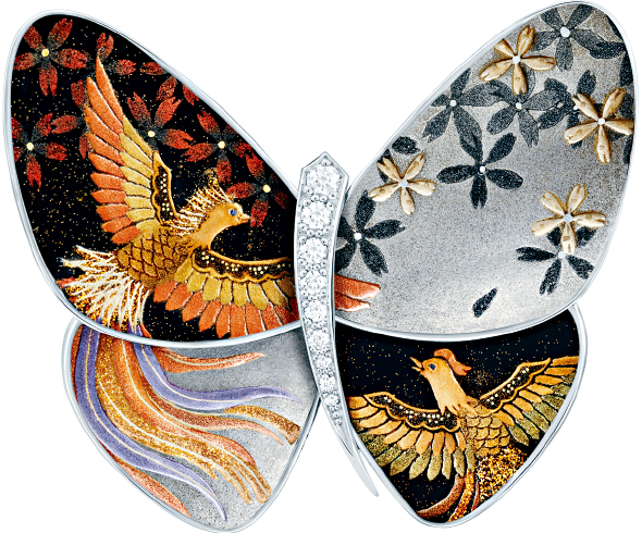 ▲Van Cleef and Arpels将法国装饰艺术与日本传统工艺巧妙结合,创制漆绘珠宝蝴蝶胸针。
