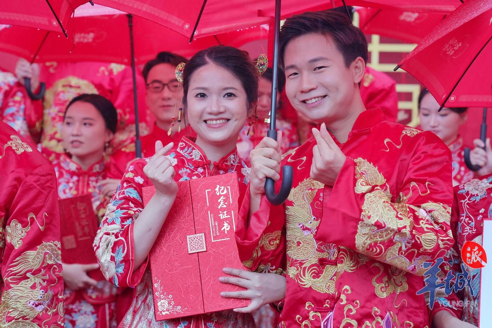 5月20日,中文谐音“我爱你”,广州荔湾举办了集体婚礼活动。30对新人齐聚荔湾湖畔,乘坐充满喜庆氛围的双喜双层巴士“掂车”,共同巡游多宝路、逢源路、如意坊等承载着美好寓意的“喜路”,沿途接受市民的祝福。随后新人们集体体验传统“喜船”,漫游荔枝湾。