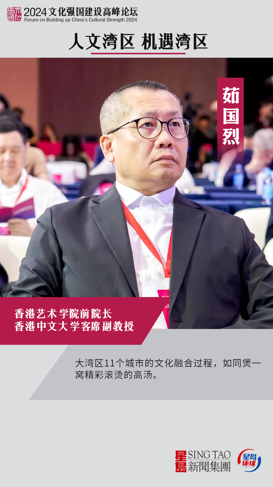 香港艺术学院前院长、香港中文大学客席副教授,茹国烈表示,“大湾区11个城市的文化融合过程,如同煲一窝精彩滚烫的高汤。”