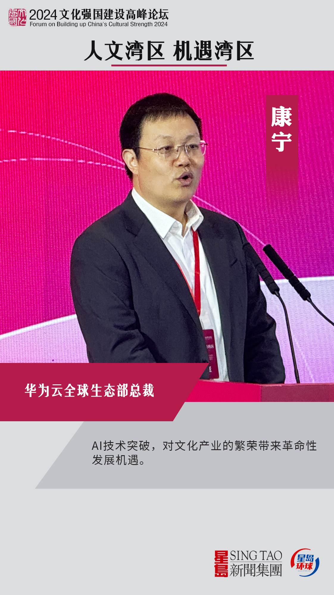 华为云全球生态部总裁康宁表示,“AI技术突破,对文化产业的繁荣带来革命性发展机遇。”