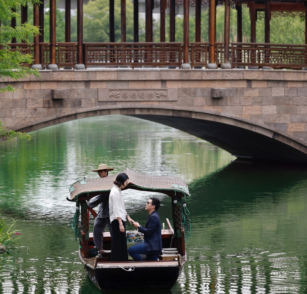 ▲霍启仁前日(23日)于IG宣布婚讯,相中可见他在艇仔上向女友单膝跪地求婚,场面简单又浪漫。